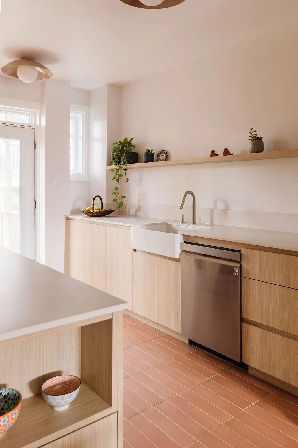 En ce qui concerne les armoires de cuisine nous avons voulu partir sur quelque chose d’à la fois épuré et chaleureux avec un ton japonisant.